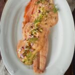 Składniki na krem: 500 g mascarpone, 1 l śmietanki 30%, garść rodzynek namoczonych w kawie i odsączonych; porzeczki i mięta do ozdoby.