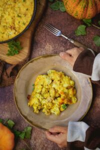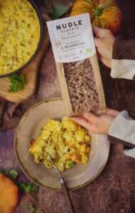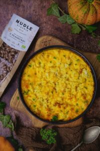 Październik to mój dyniowy miesiąc. Mam dla Was kilka nowych przepisów z tą królową jesieni 🙂 dziś podzielę się przepisem na zapiekankę makaronową w sosie dyniowym. Smak dania możesz podkręcić szałwią – ja niestety jej nie miałam. Zanim zaczniesz przygotowywać zapiekankę, na patelni z rozgrzanym masłem usmaż kilka liści szałwii a potem dodaj je do dania 🙂