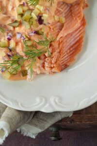 Wędzony pstrąg jest tak smaczny, że nie potrzebuje żadnych dodatków. Ale…ma dla Was bardzo fajny pomysł na ta rybkę 😉 Danie robi się bardzo szybko więc idealnie nadaje się dla zabieganych na przyjemny obiad w tygodniu jak i kolację wigilijną 😉 Jeśli filety z pstrąga zostały połamane w czasie oczyszczania z ości i skóry, nie ma co się przejmować. Wystarczy na półmisku ułożyć w kształt ryby i polać sosem.